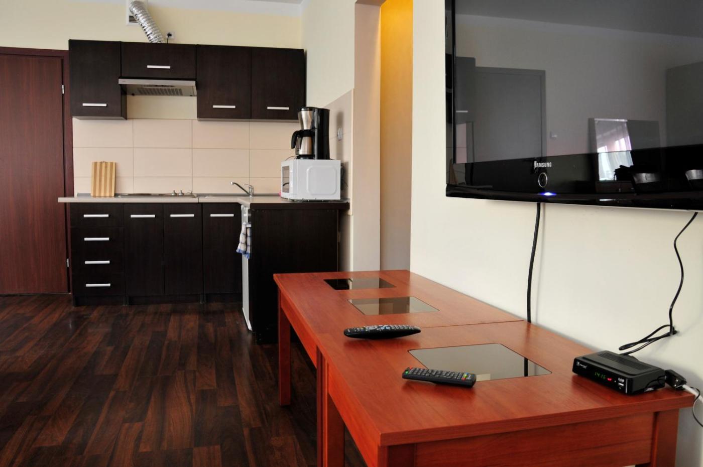 Studio typu Standard. The kitchenette features a stovetop, a refrigerator and kitchenware. This studio has a private bathroom, a private entrance, a coffee machine as well as a terrace. The unit has 3 beds. Studio - 5 osobowy. Powierzchnia pokoju ok.: 30 mkw. ;