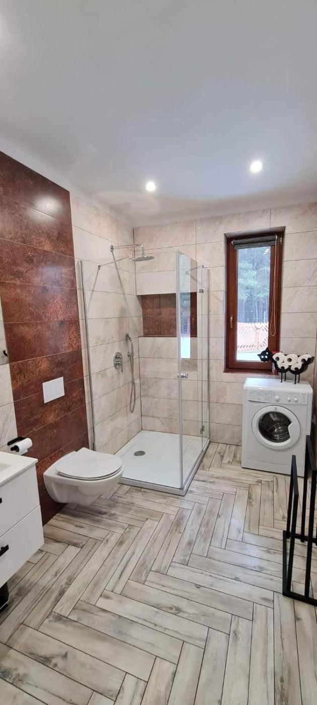 Willa. This villa offers a fireplace. Guests will find a stovetop, a refrigerator, a dishwasher and kitchenware in the well-equipped kitchen. The villa also provides guests with a barbecue. The villa provides a washing machine, a coffee machine, a terrace with garden views as well as a shared bathroom featuring a shower. The unit offers 7 beds. Willa - 10 osobowy. Powierzchnia pokoju ok.: 140 mkw.
