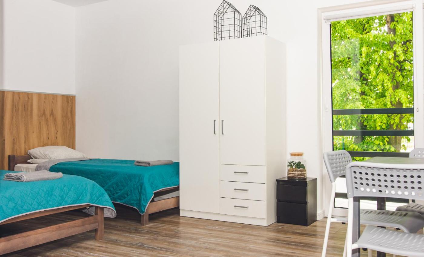 Studio. The studio provides a wardrobe, a tiled floor, as well as a private bathroom boasting a shower. Guests will find a stovetop, a refrigerator, kitchenware and an oven in the well-fitted kitchenette. The studio also includes a barbecue. The studio features a private entrance, soundproof walls, a tea and coffee maker, a dining area, as well as a flat-screen TV. The unit has 3 beds. Studio - 3 osobowy. Powierzchnia pokoju ok.: 35 mkw.
